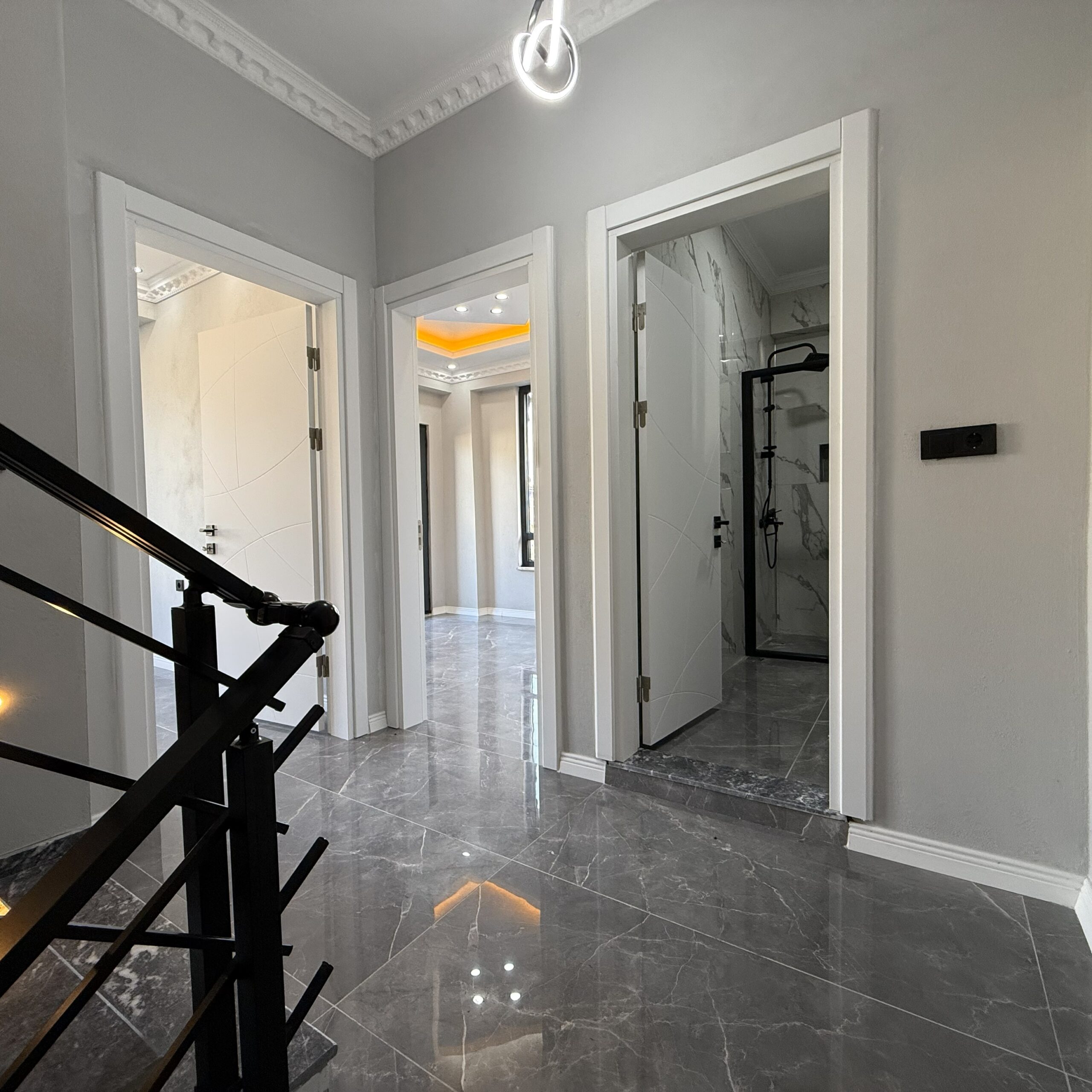✔ Giriş Kat:• Salon• Açık mutfak• Lavabo• Balkon✔ 2. Kat:• 2 yatak odası• Banyo + WC (duş)• Balkon✔ 3. Kat:• 1 yatak odası• Banyo + WC (duş)• Geniş terasTAPU & FİNANSMAN