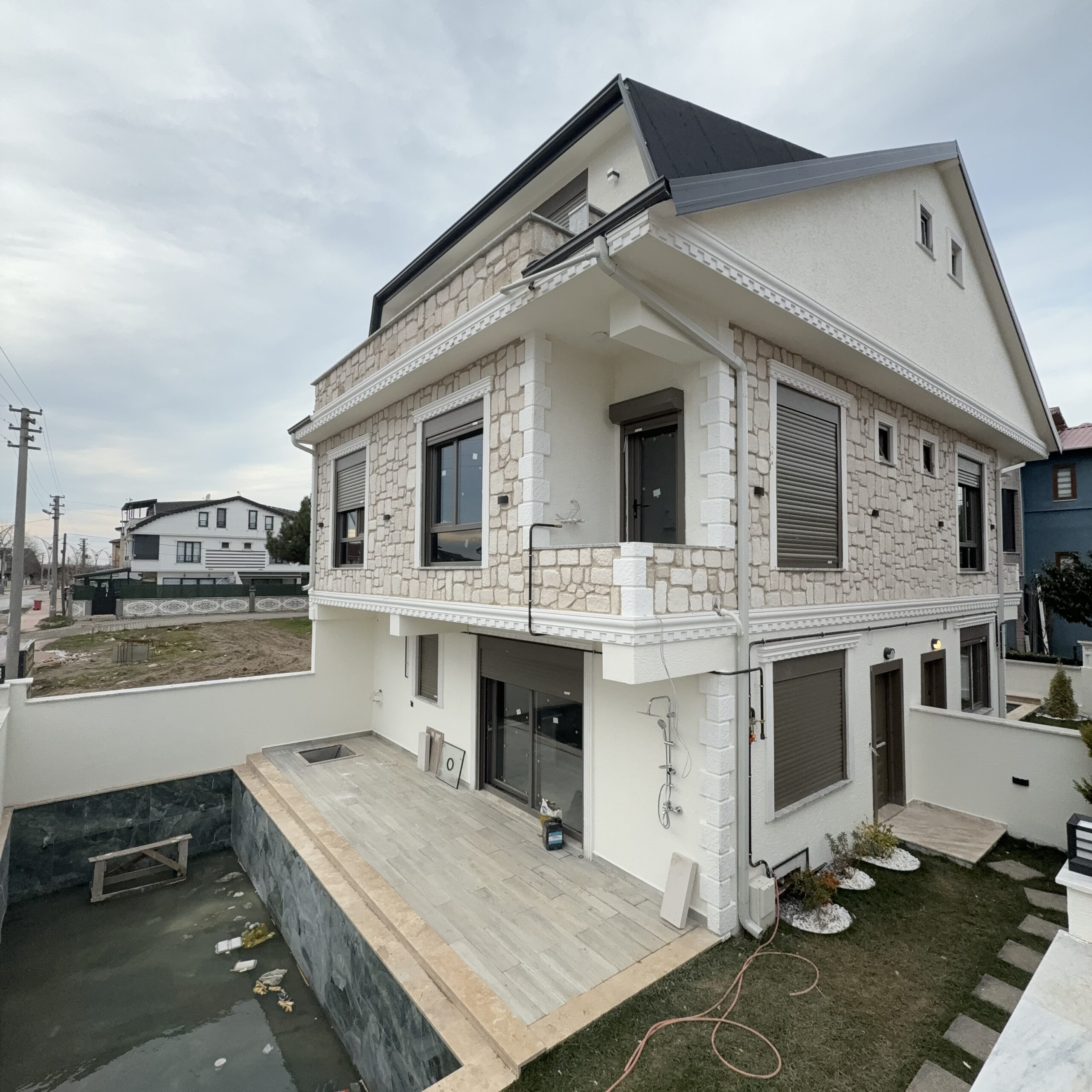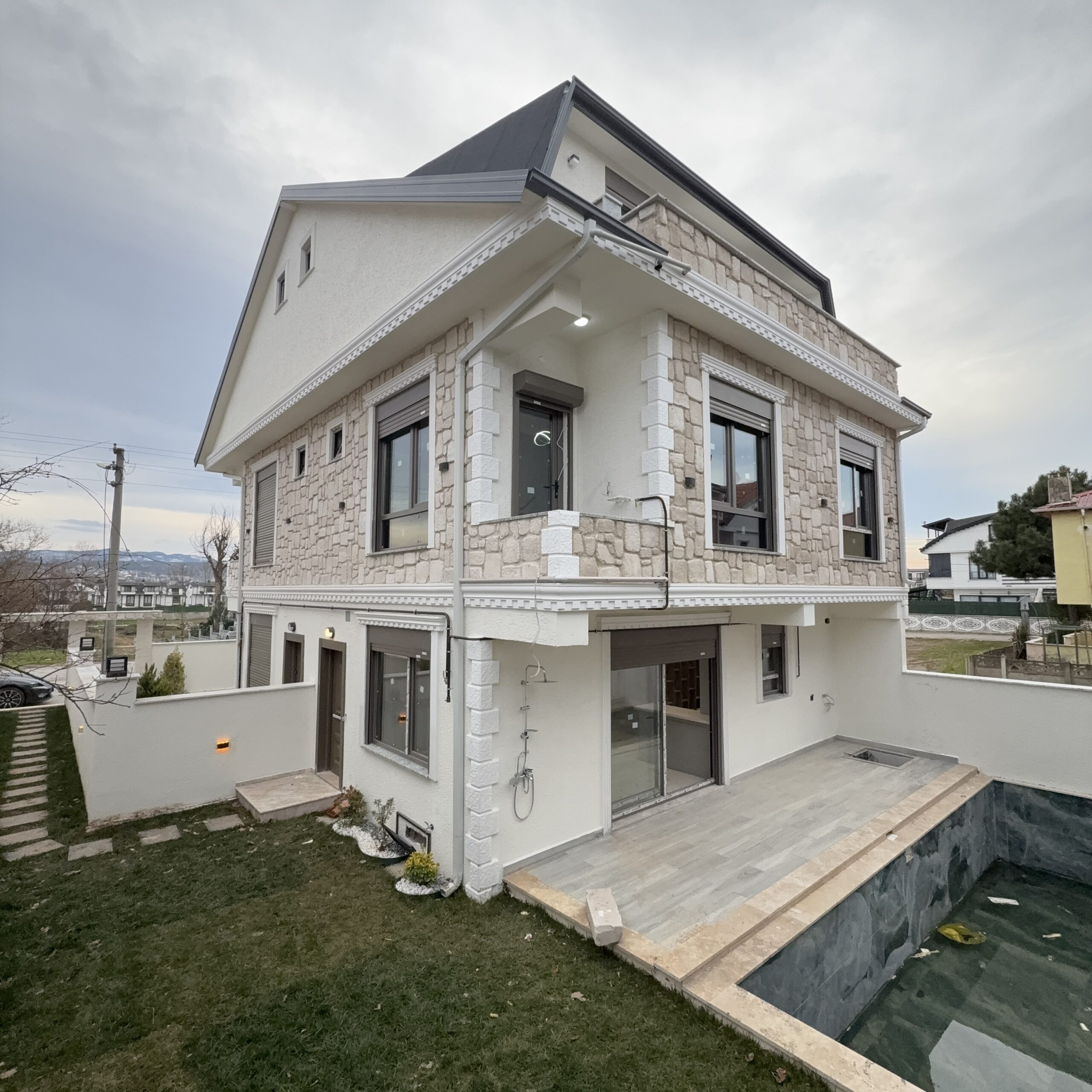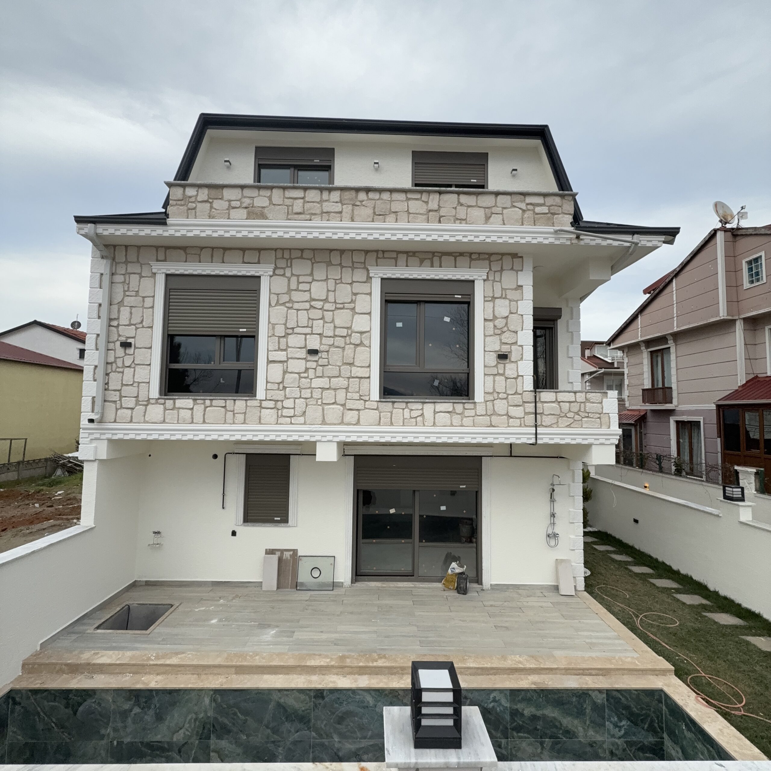 ✅ Alaçatı taş konsept dış cephe✅ C30 beton yapı kalitesi✅ Çift sıra tuğla + iki villa arası ses izolasyonu✅ Yüksek çevre duvarları✅ Zengin peyzaj çalışması✅ Dış & iç çevre duvar aydınlatmaları✅ İÇ MEKAN & KONFOR